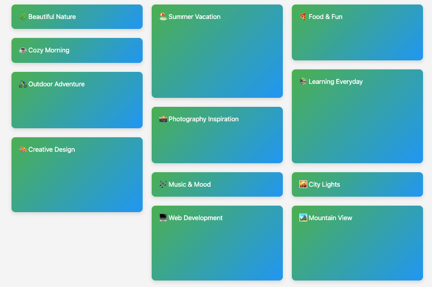 <div class="item">🌿 Beautiful Nature</div>